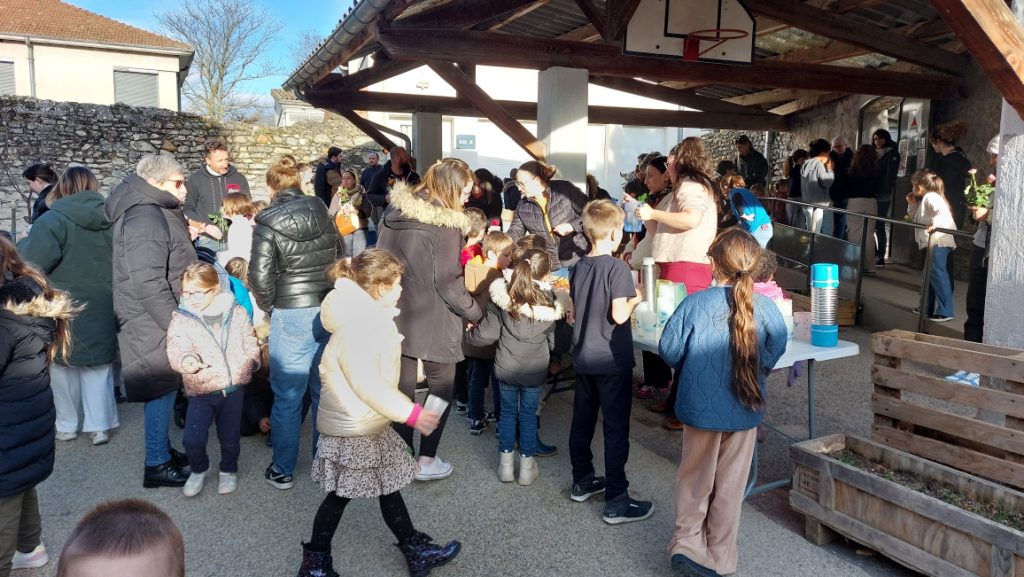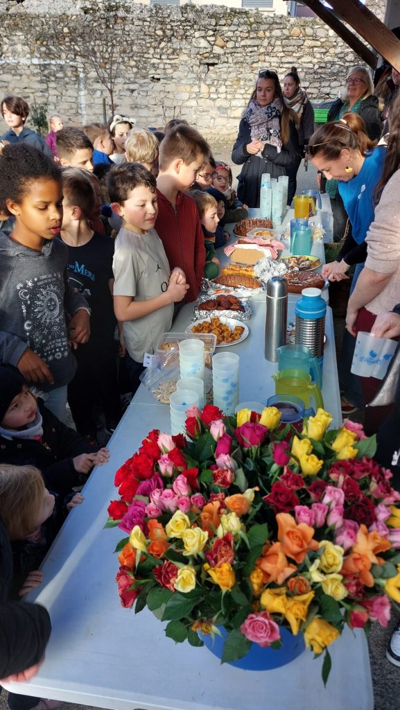 Ce vendredi 12 décembre en soirée, l’Association de parents de l’école (l’APEL) a fait vivre un moment magique aux enfants. De multiples ateliers de Noël ont été proposés (lettre au Père Noël, dessin, fresque, décorations…) et l’on pouvait également se restaurer ou prendre une boisson. Vers 17h30, les enfants se sont rassemblés et ont chanté divers chants de Noël préparés en classe. Puis un invité surprise est arrivé…