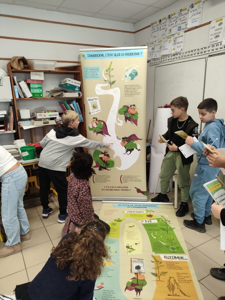 Ce lundi 2 février, une équipe d’intervenants est venue à l’école pour former les CM aux problèmes que pose l’ambroisie. Les élèves ont participé à plusieurs ateliers. Ils ont été très actifs et intéressés !