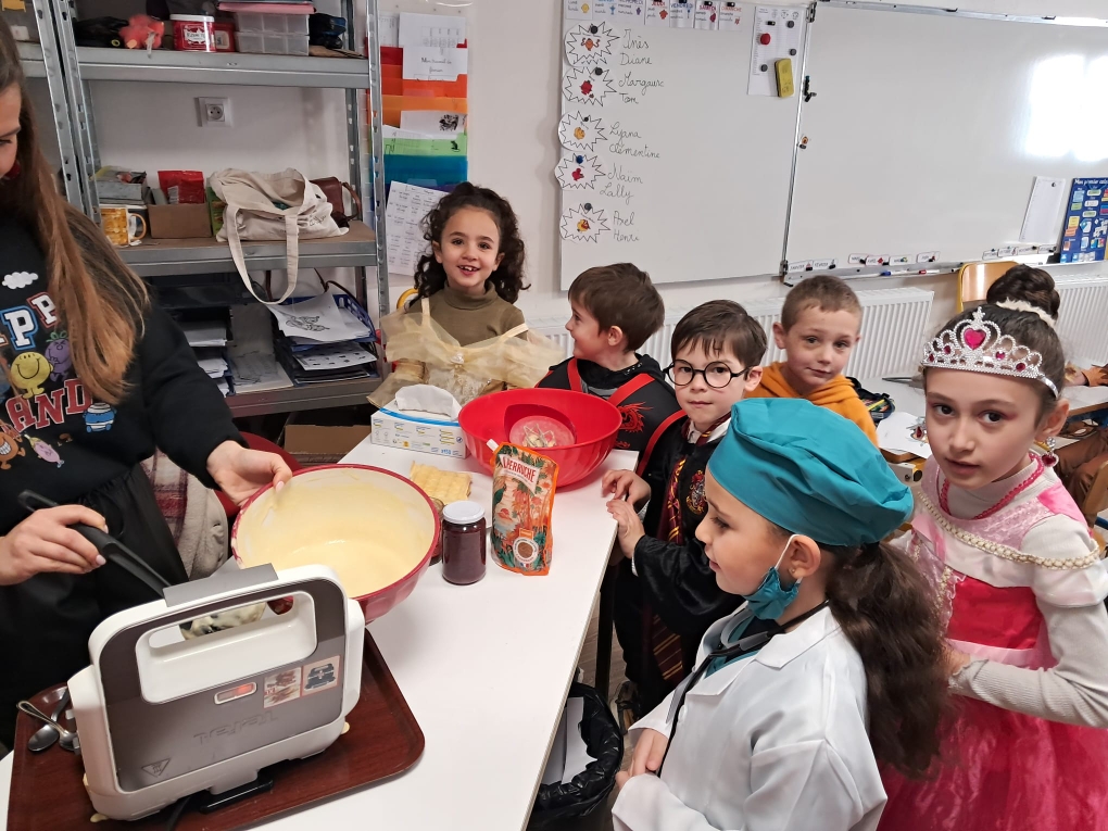 Ce vendredi 5 décembre, Nina, la maîtresse des GS/CP, a organisé une journée surprise pour ses élèves afin de leur dire au revoir. Plusieurs ateliers ont été organisés dont l’atelier crêpes, pour le plaisir de tous !
