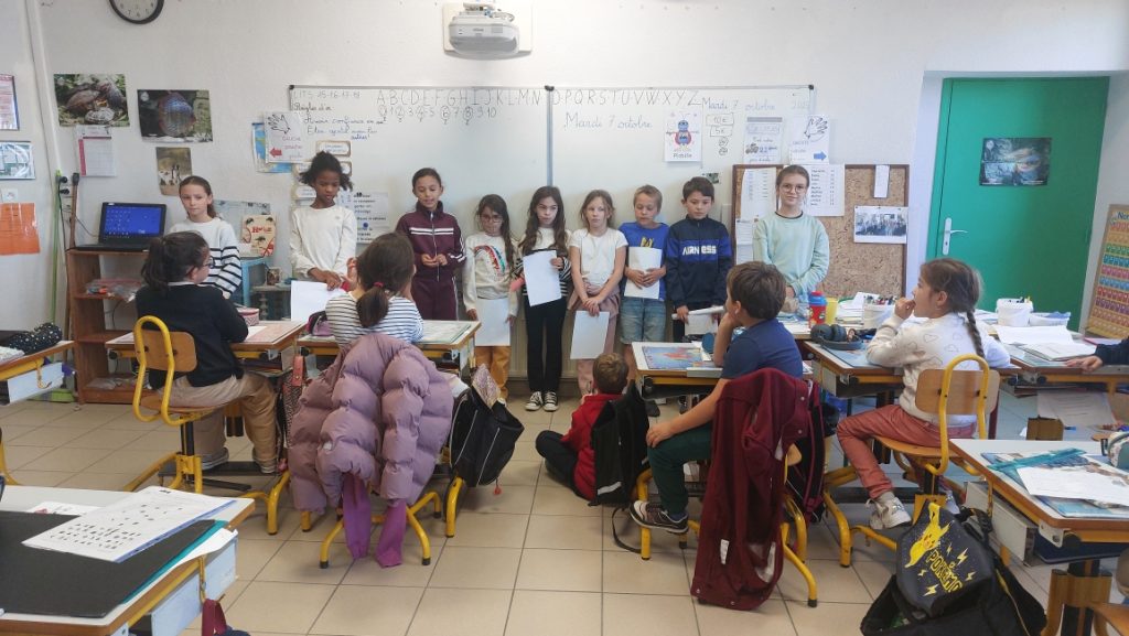 Les enfants de l’école qui se présentent à l’élection du Conseil Municipal des Enfants sont venus dans les classes parler de leurs projets.