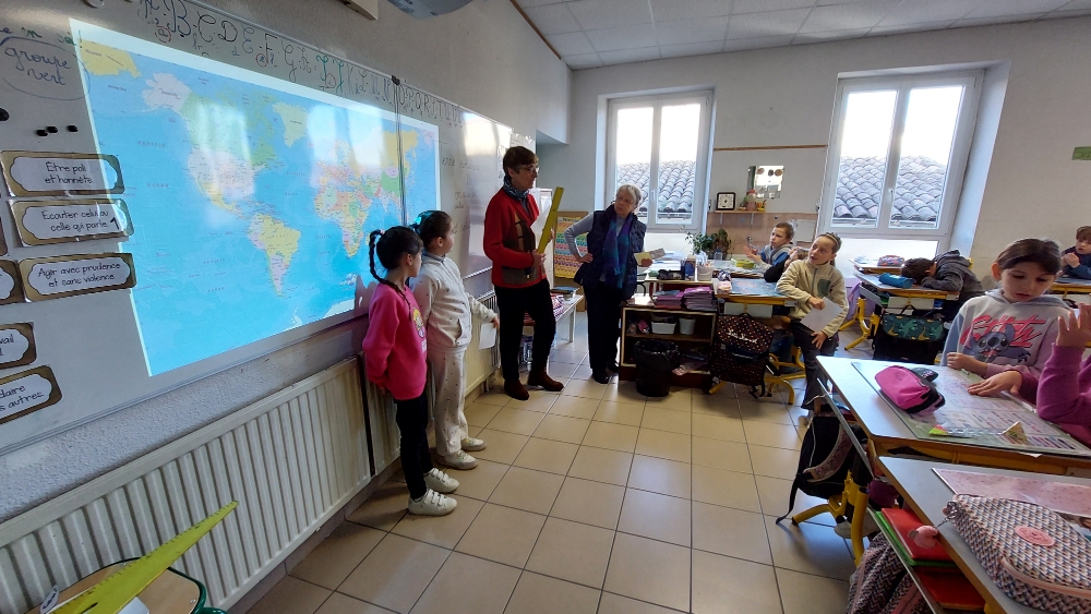 Ce vendredi 27 mars nous avons accueilli sur notre école l’association Terre Solidaire. Chaque classe a bénéficié d’une animation afin que chaque élève soit sensibilisé aux différents modes de vie sur notre planète et sur l’entraide possible entre les peuples.