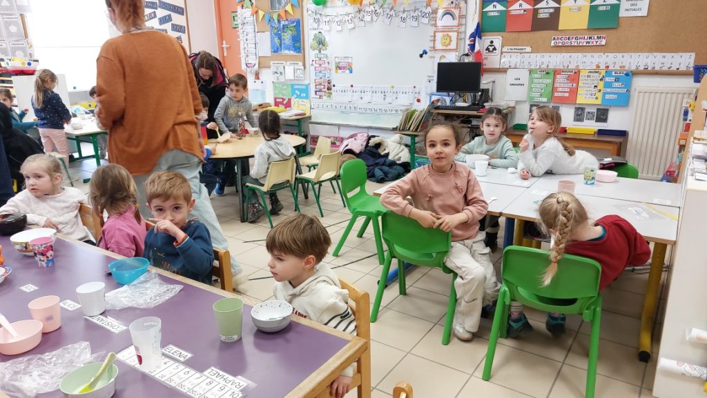 Ce vendredi 5 décembre, Nina, la maîtresse des GS/CP, a organisé une journée surprise pour ses élèves afin de leur dire au revoir. Plusieurs ateliers ont été organisés dont l’atelier crêpes, pour le plaisir de tous !